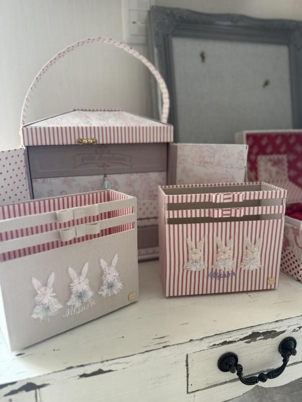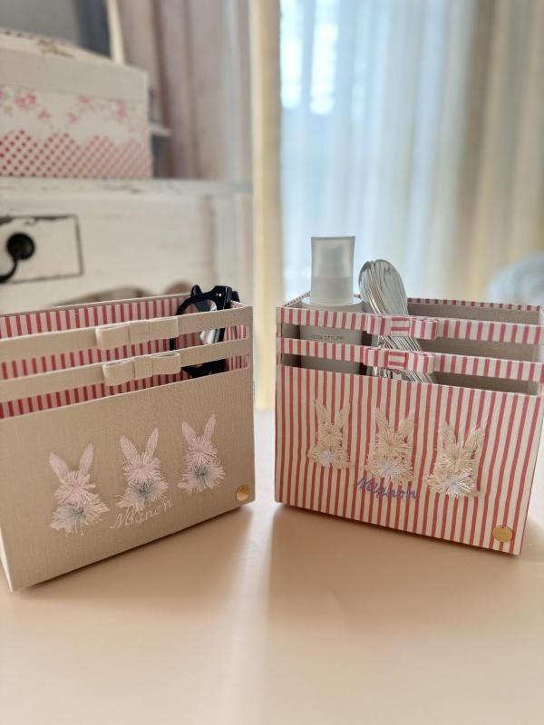 ふわふわの毛並みが可愛い“うさぎ”の刺繍がポイントの、カルトナージュハンドメイドキットです。