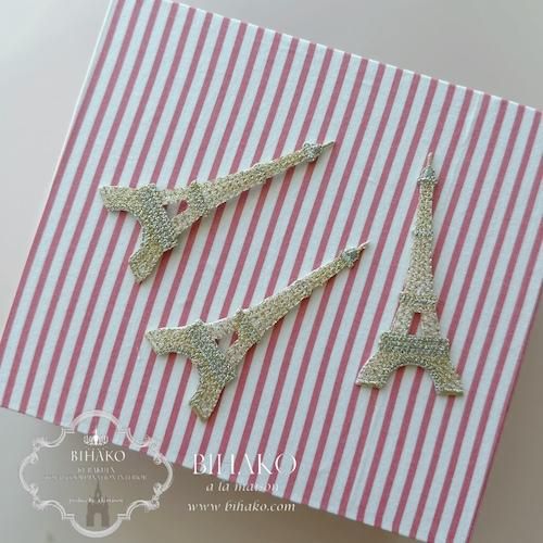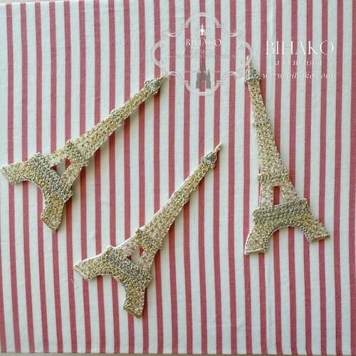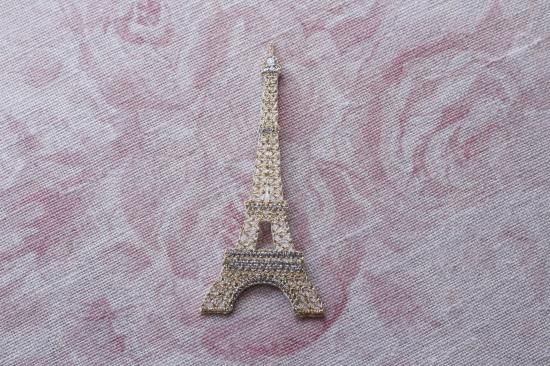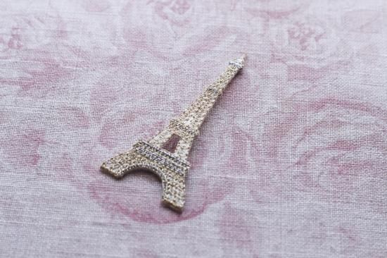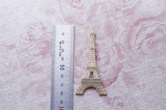 フランス製、ゴールド×シルバーのエッフェル塔アップリケ。